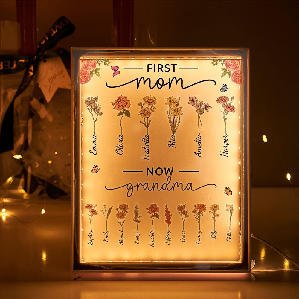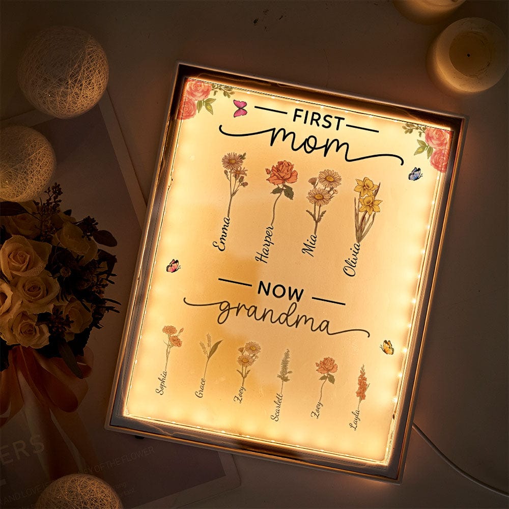 Personalized Birth Flower Lamp First Mom Now Grandma Night Light Mirror Mother's Day Gifts