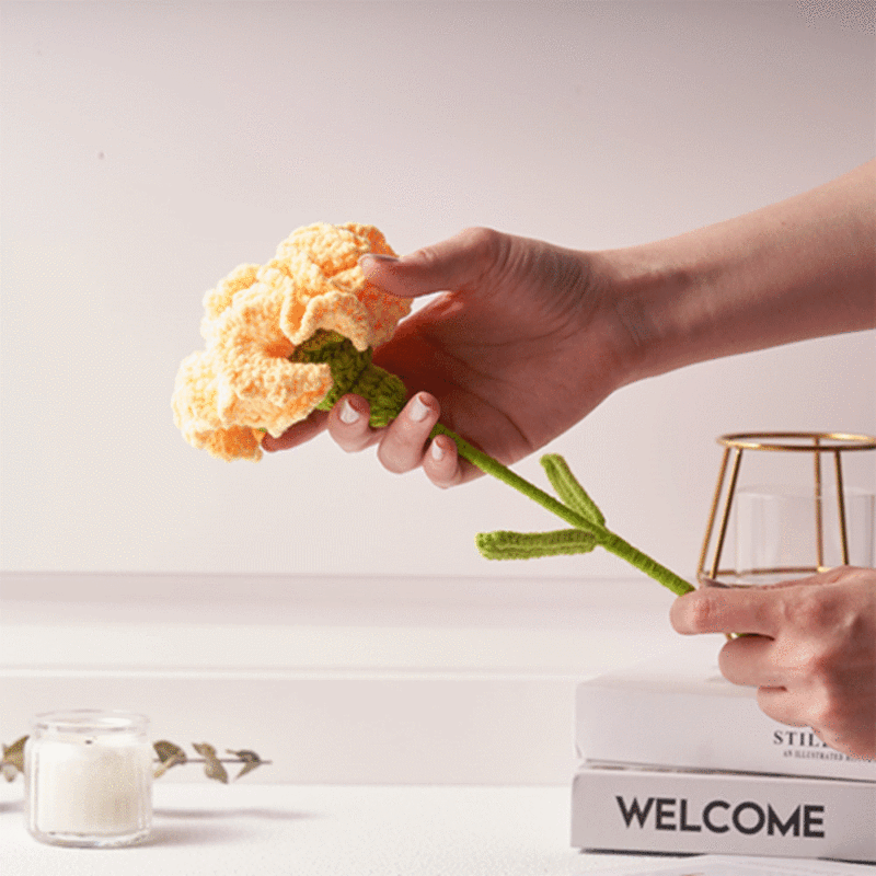 Our crochet flowers are hand-knitted in a smoke-free home. It is made of high-quality cotton yarn that feels soft and strong, so you don't need to worry about health problems. it is safe and suitable for those with flower allergies.