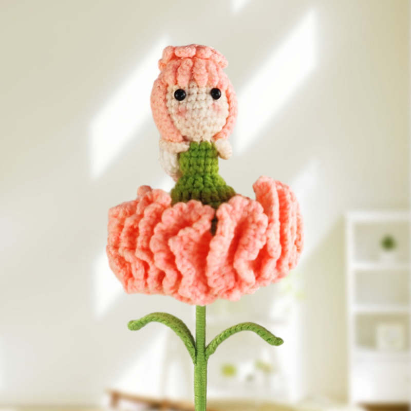 Carnation Fairy Crochet Doll Flower Handmade Knitted Flower Gift for Lover