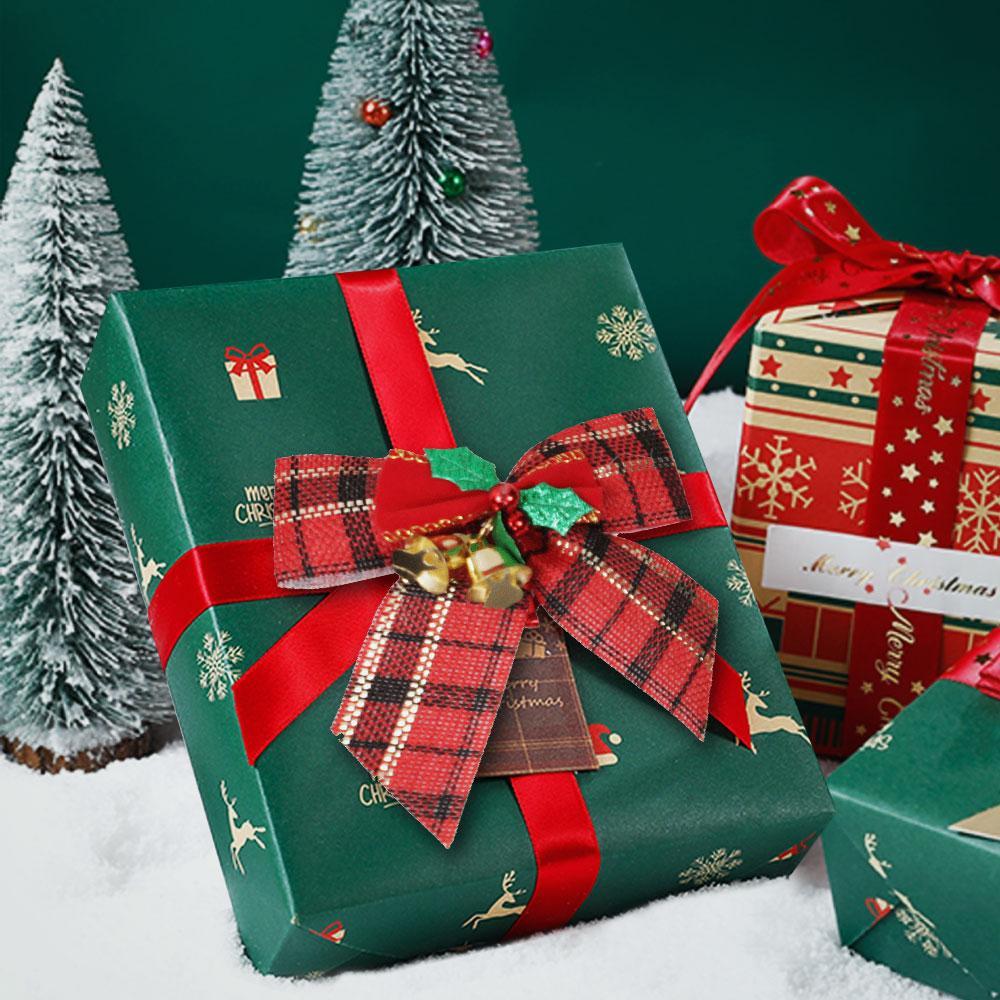 Christmas Bow Tie With Bells Lattice Bow for Xmas Gift Box Berry