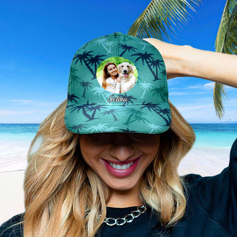 Personalized Photo and Name Hawaiian Style Baseball Cap Gifts for Women Men Unisex