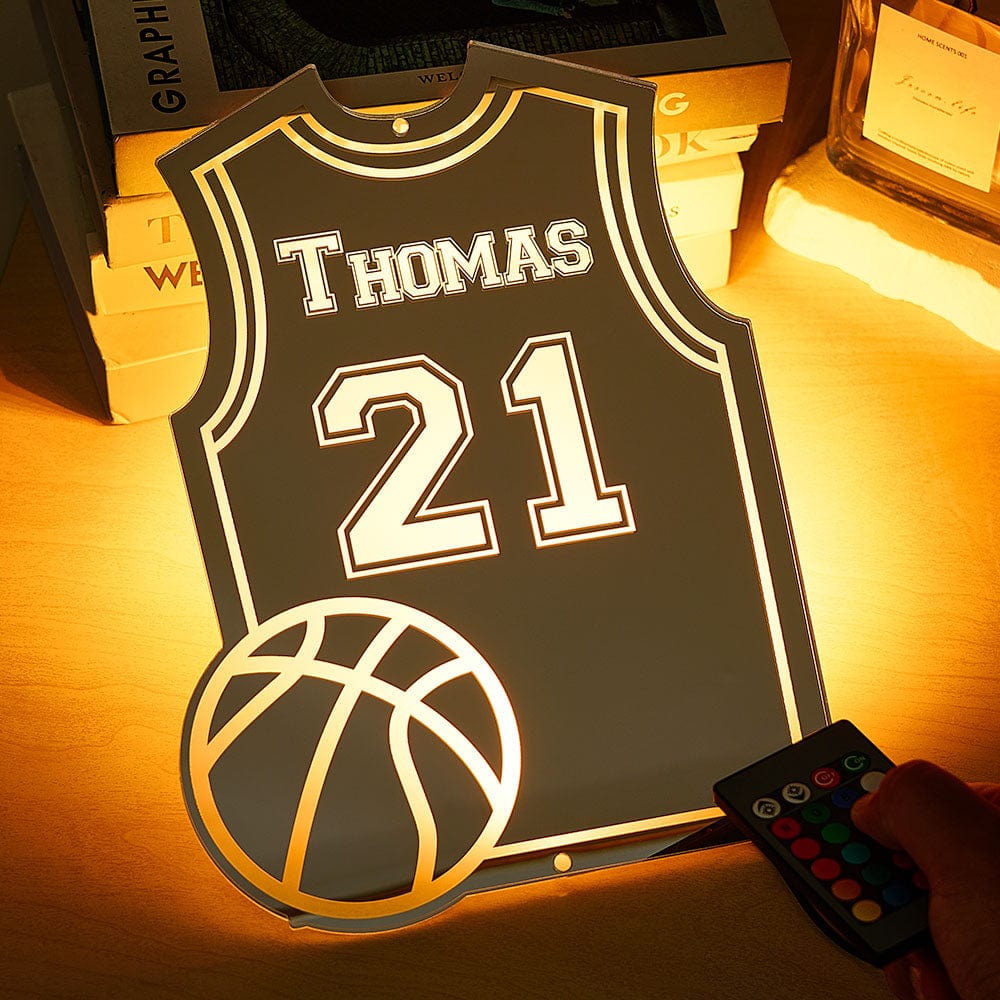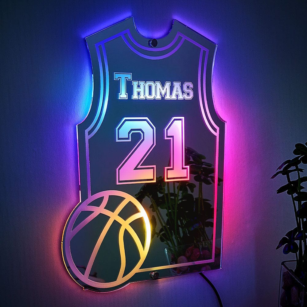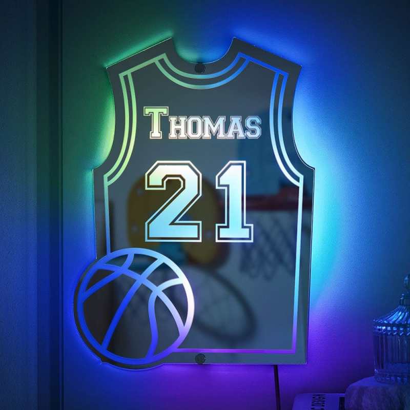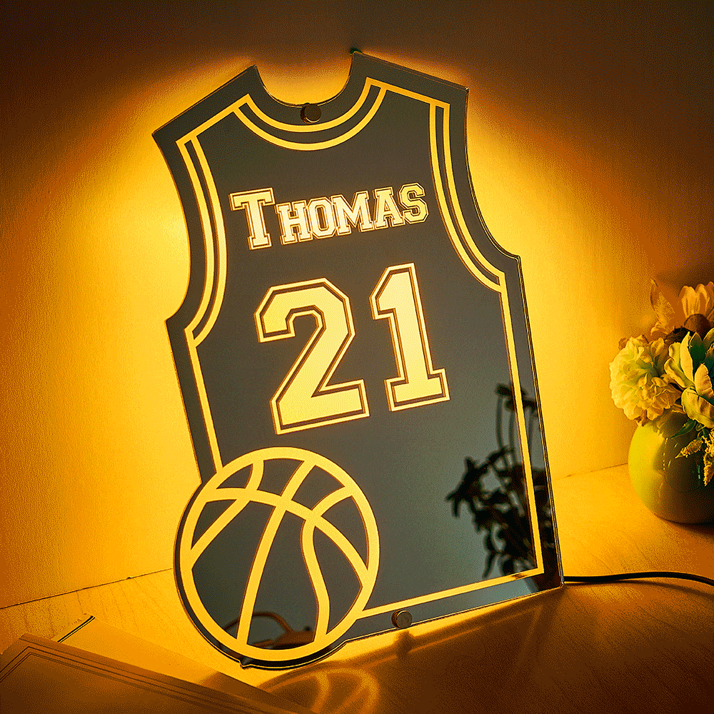 Custom Basketball Jersey Mirror Light with Name and Number Personalized Gift for Basketball Lover