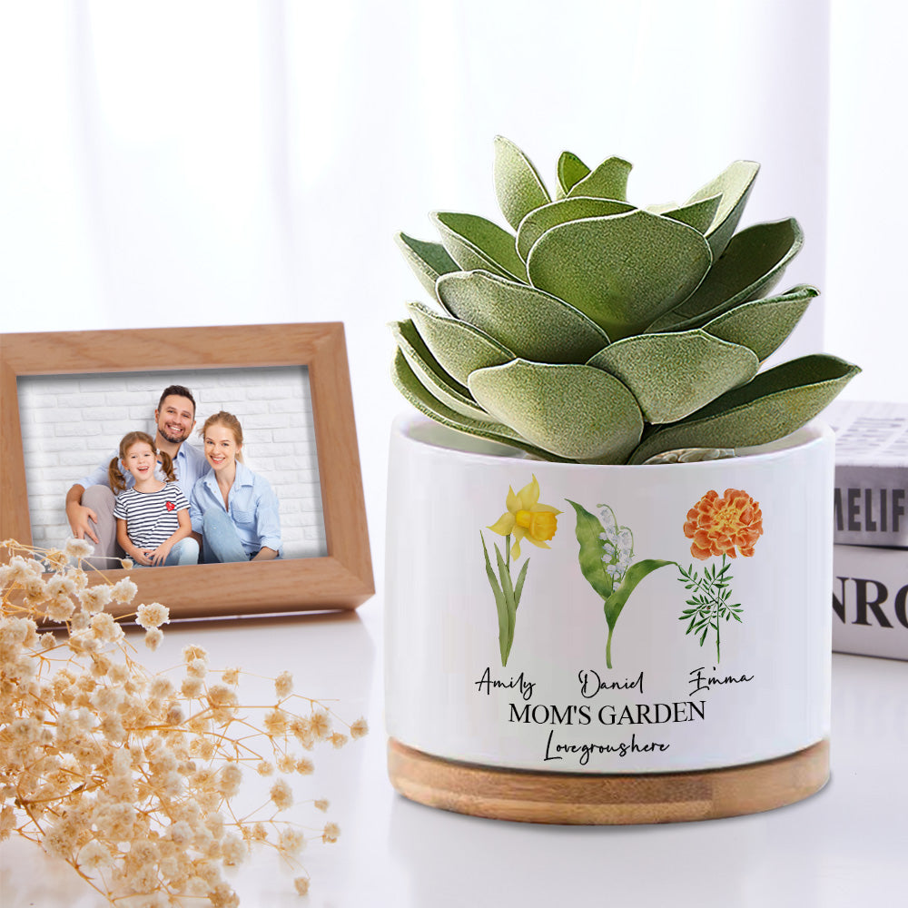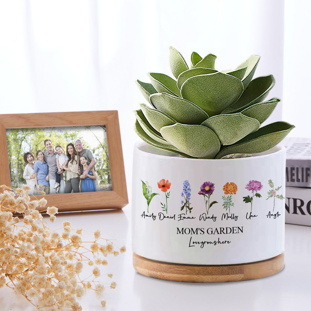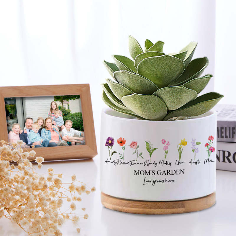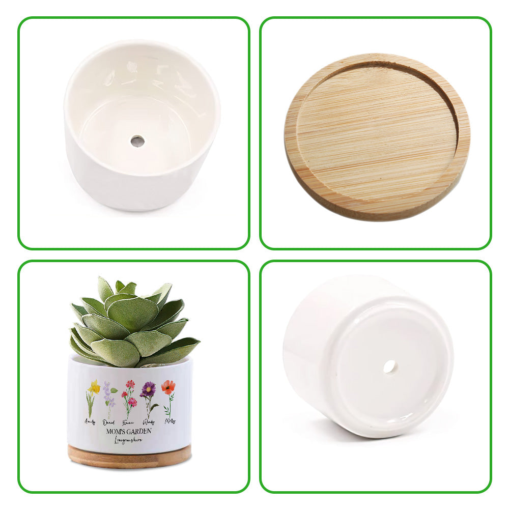 Custom Birth Flowers Planter Pot Personalized Name Ceramic Succulent Plant Pot