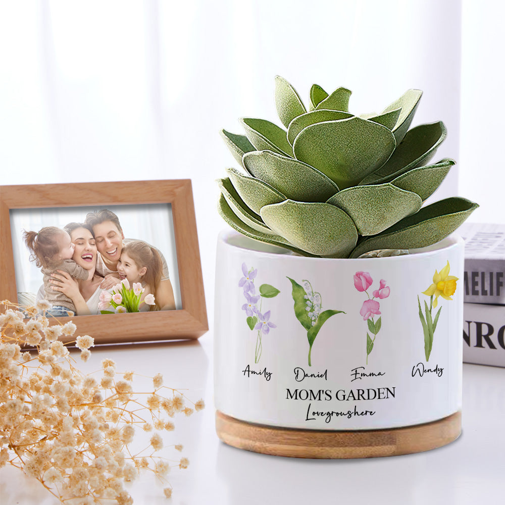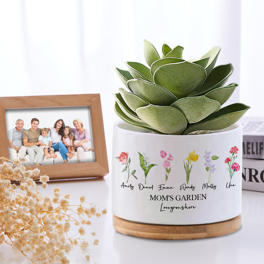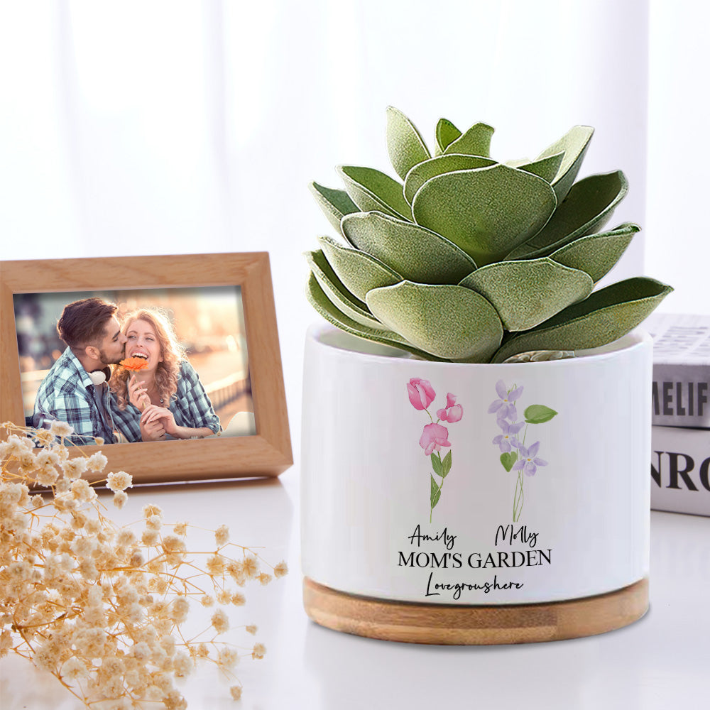 Custom Birth Flowers Planter Pot Personalized Name Ceramic Succulent Plant Pot
