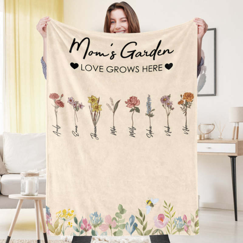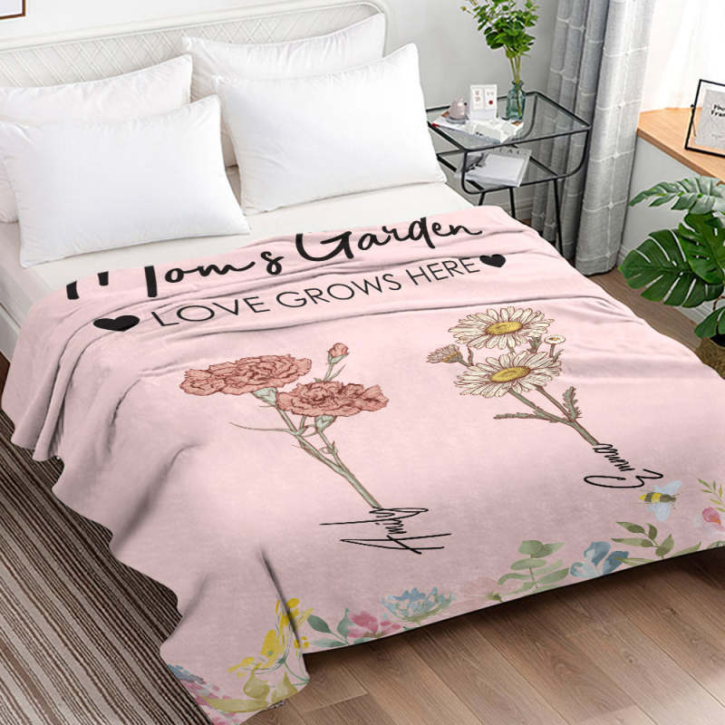 Custom Birthday Flower Blanket Personalized Name Blanket Unique Gift