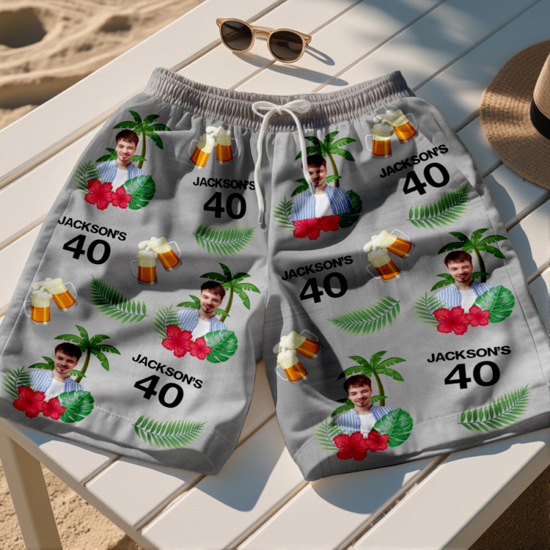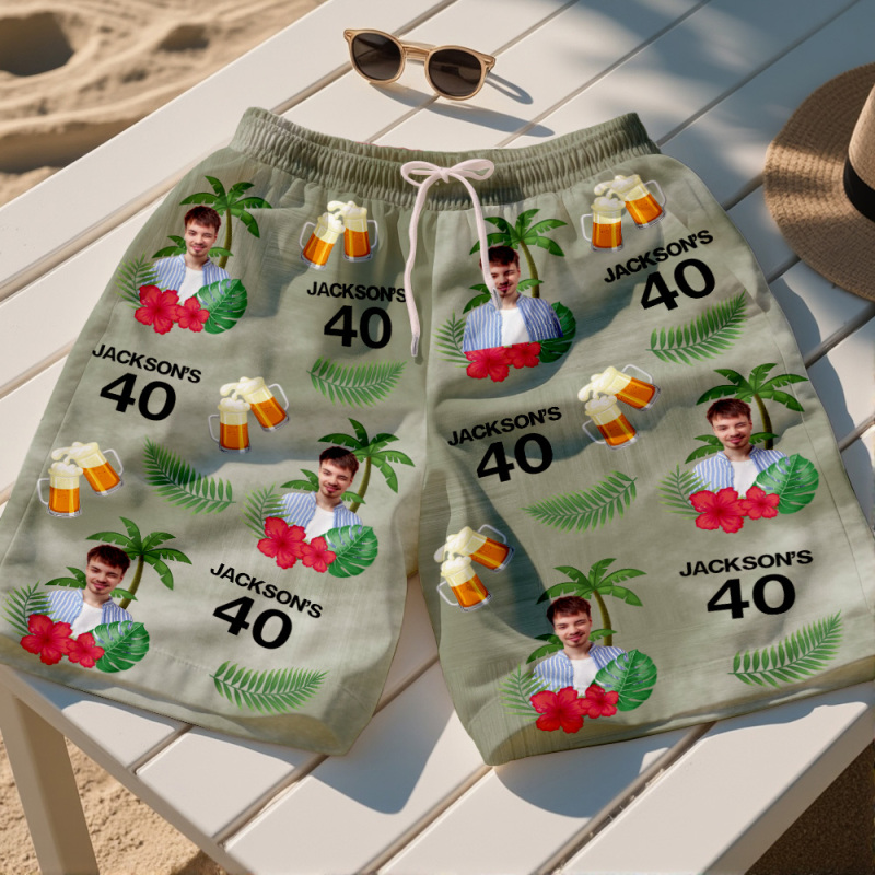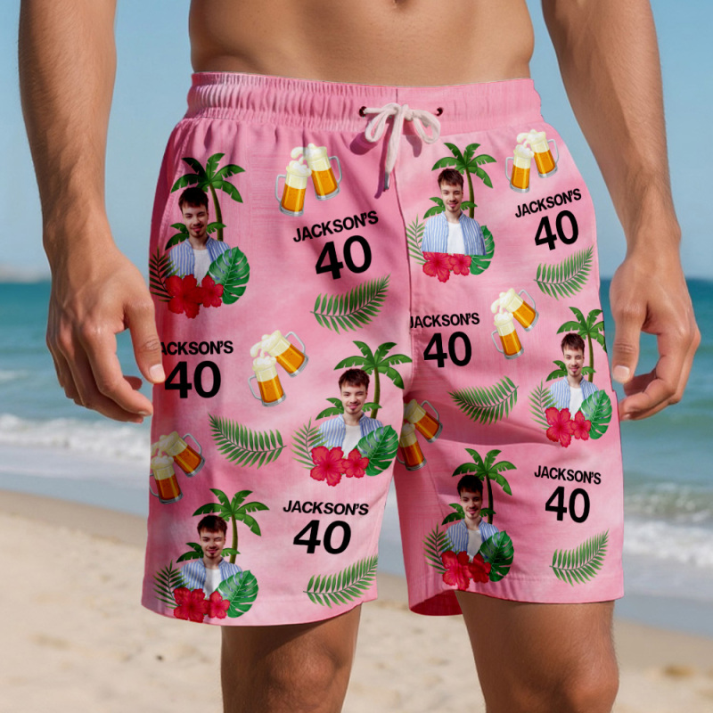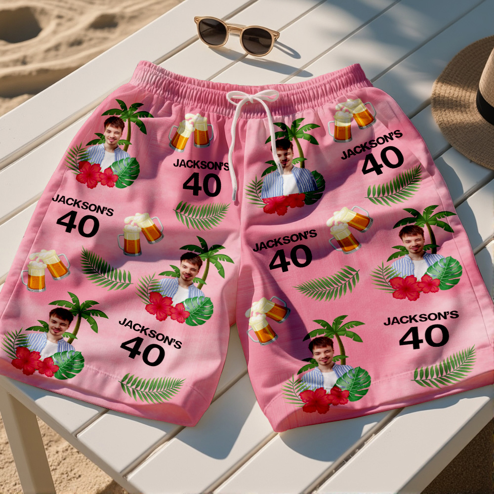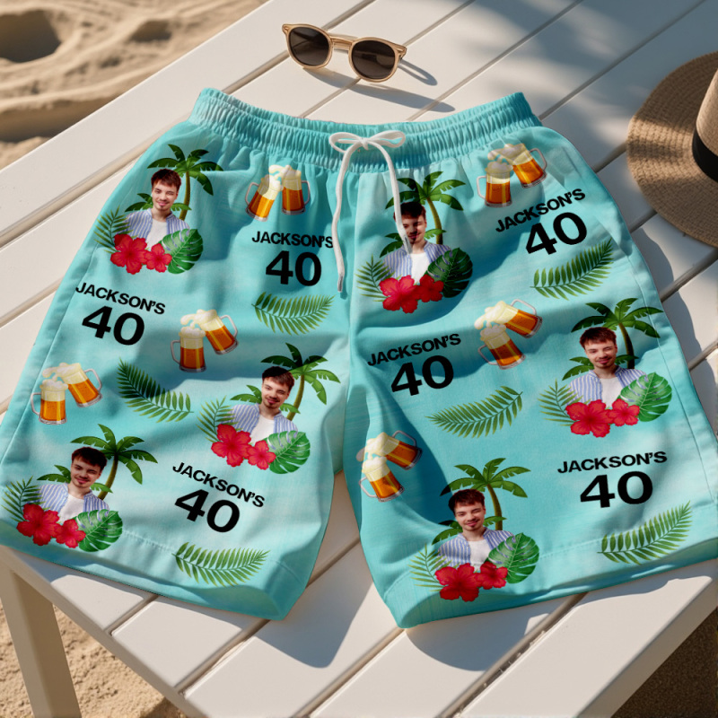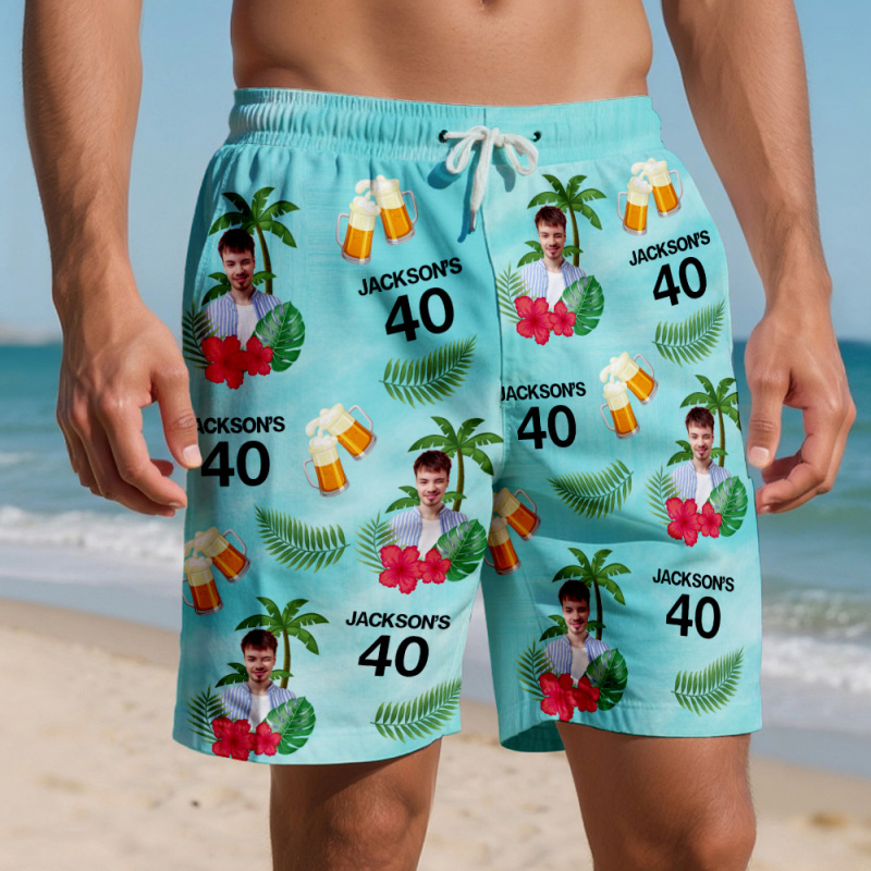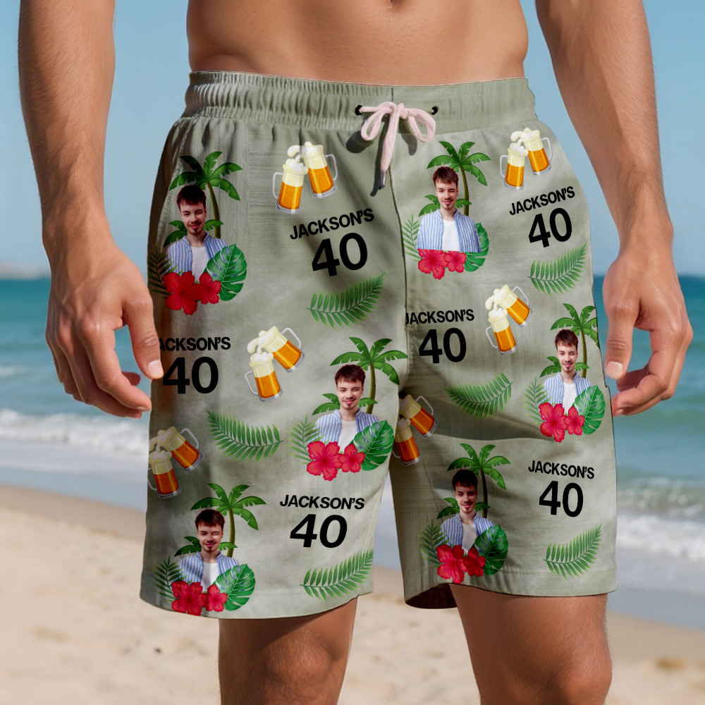 Custom Birthday Swim Trunks with Face and Text Birthday Gift for Him