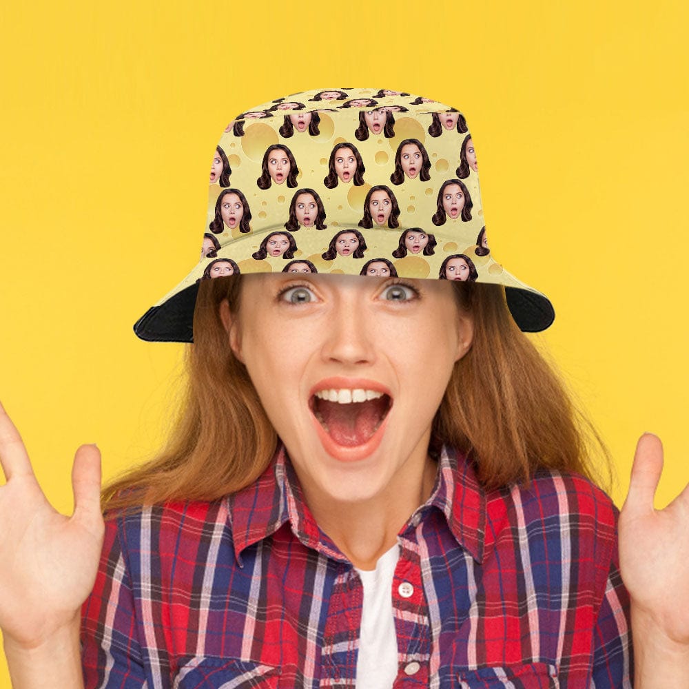 Custom Bucket Hat Personalized Face Cheese Bucket Hat Summer Wide Brim Fisherman Hat Gifts