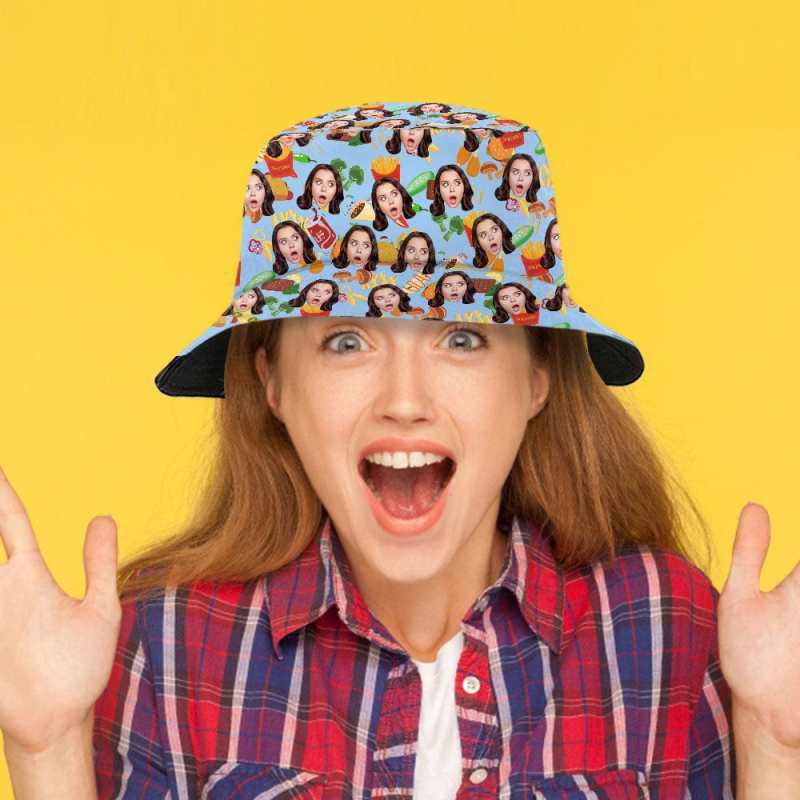 Custom Bucket Hat Personalized Face Food Bucket Hat Summer Wide Brim Fisherman Hat Gifts