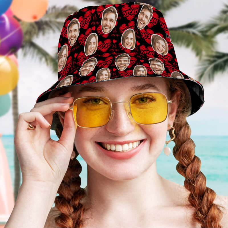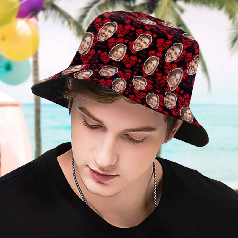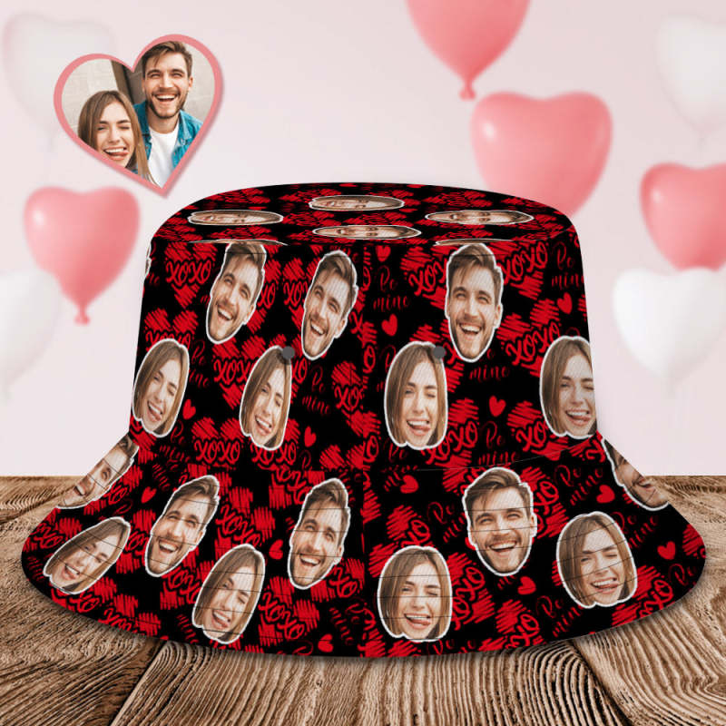 Custom Bucket Hat Personalized Couples Face Fisherman Cap Gifts for Valentine's Day