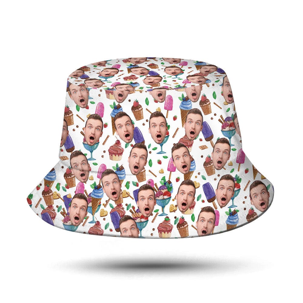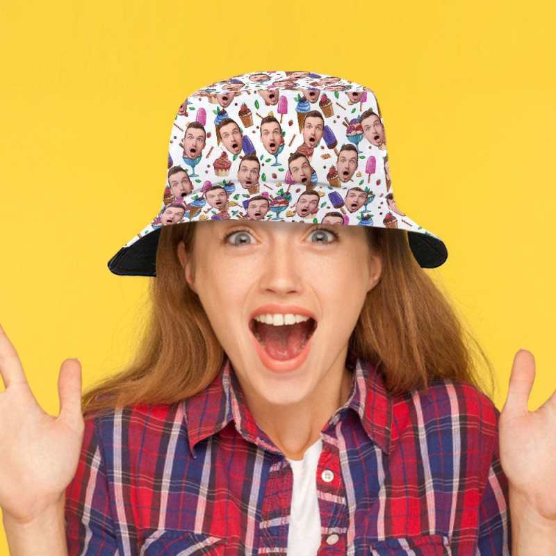Custom Bucket Hat Personalized Face Ice Cream Bucket Hat Summer Wide Brim Fisherman Hat Gifts
