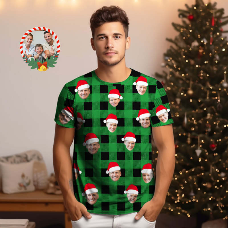 Custom Buffalo Plaid T-shirt Personalized Face T-shirts Merry Christmas