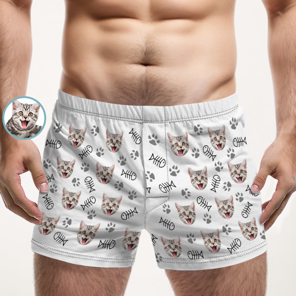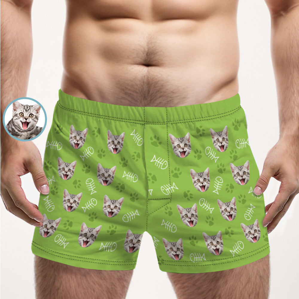 Custom Cat Face Multicolor Boxer Shorts Personalized Casual Underwear Gift for Him