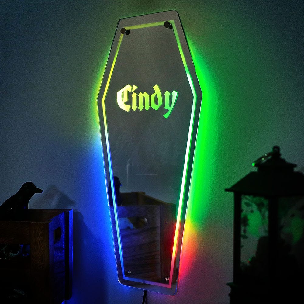 Custom Coffin Mirror Light with Name Gothic Mirror Light for Home Decor