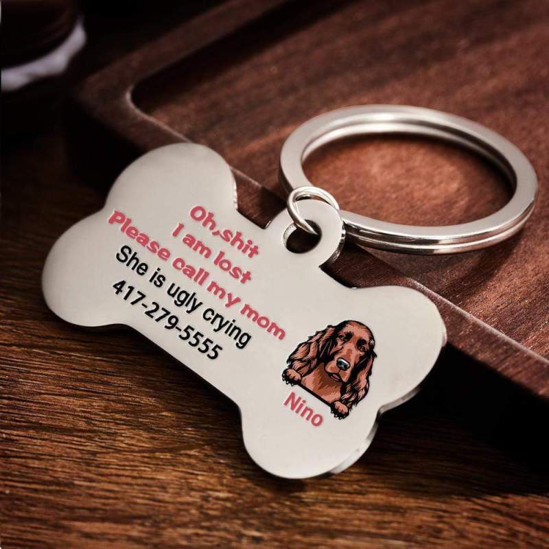 Custom Dog ID Tag Gifts for Dog Call My Mom She is Ugly Crying Dog Tag
