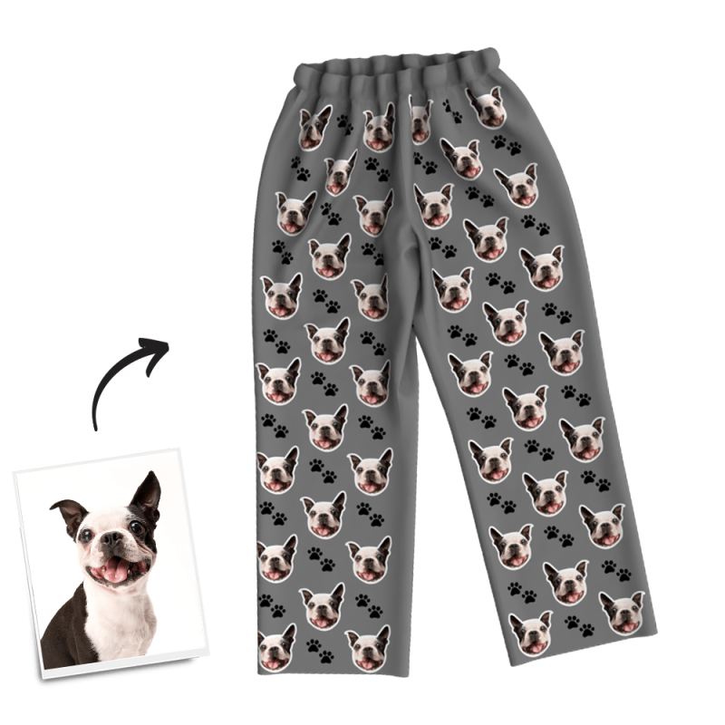Personalized Photo Pajama Pants with Dog Face Pet Memorial Gifts