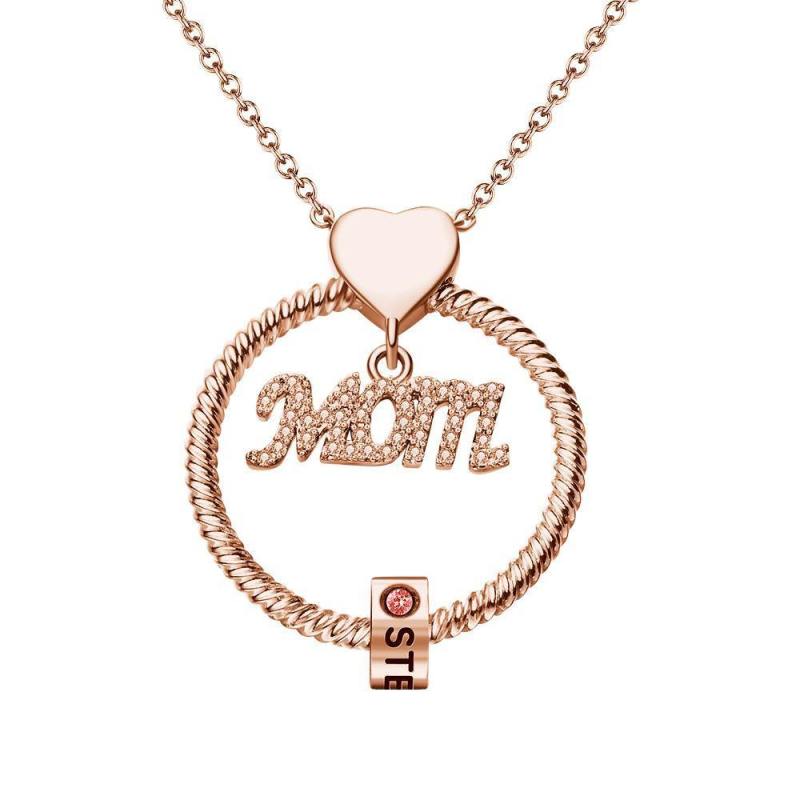 Custom Engraved Necklace With One Birthstone Gifts For Mom - Rose Gold
