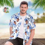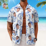 Custom Face All Over Print Men's Hawaiian Shirt Blue Leaves Gift for Him