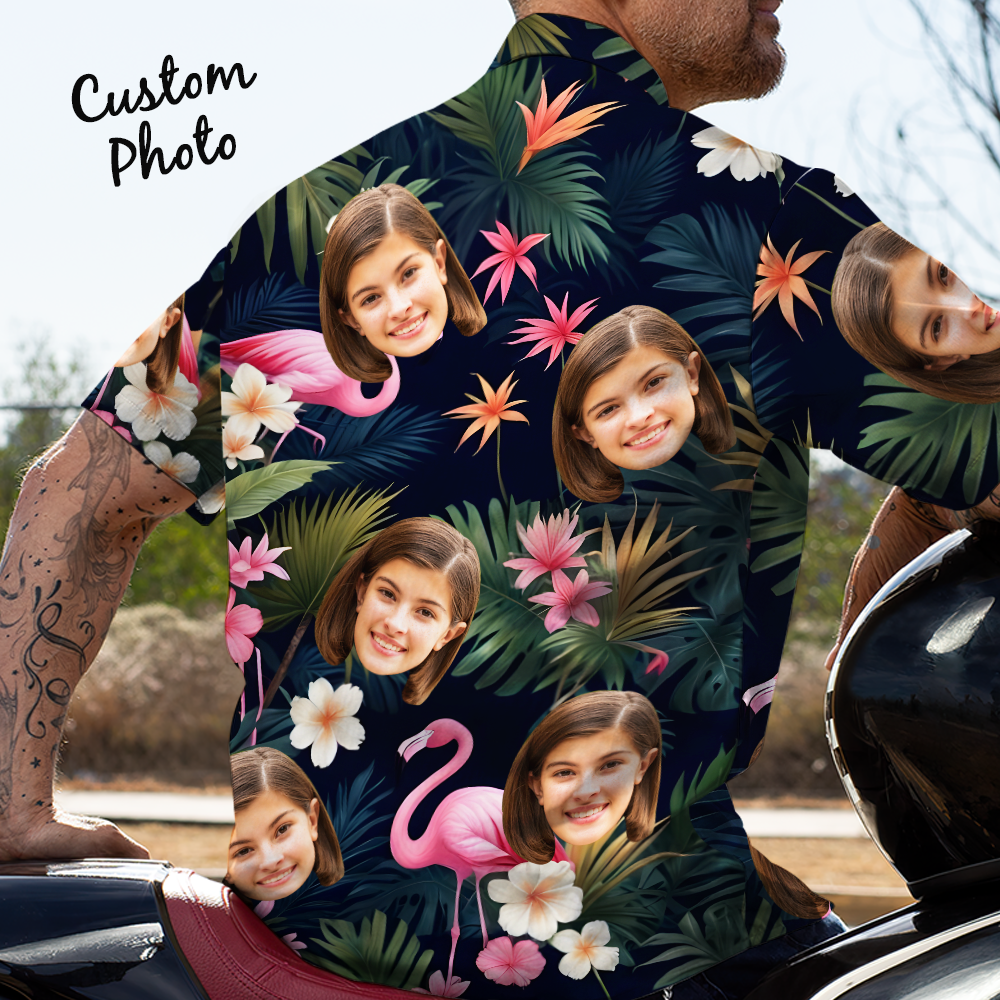 Custom Face All Over Print Men's Hawaiian Shirt Flamingo Flower and Leaves Gift for Him