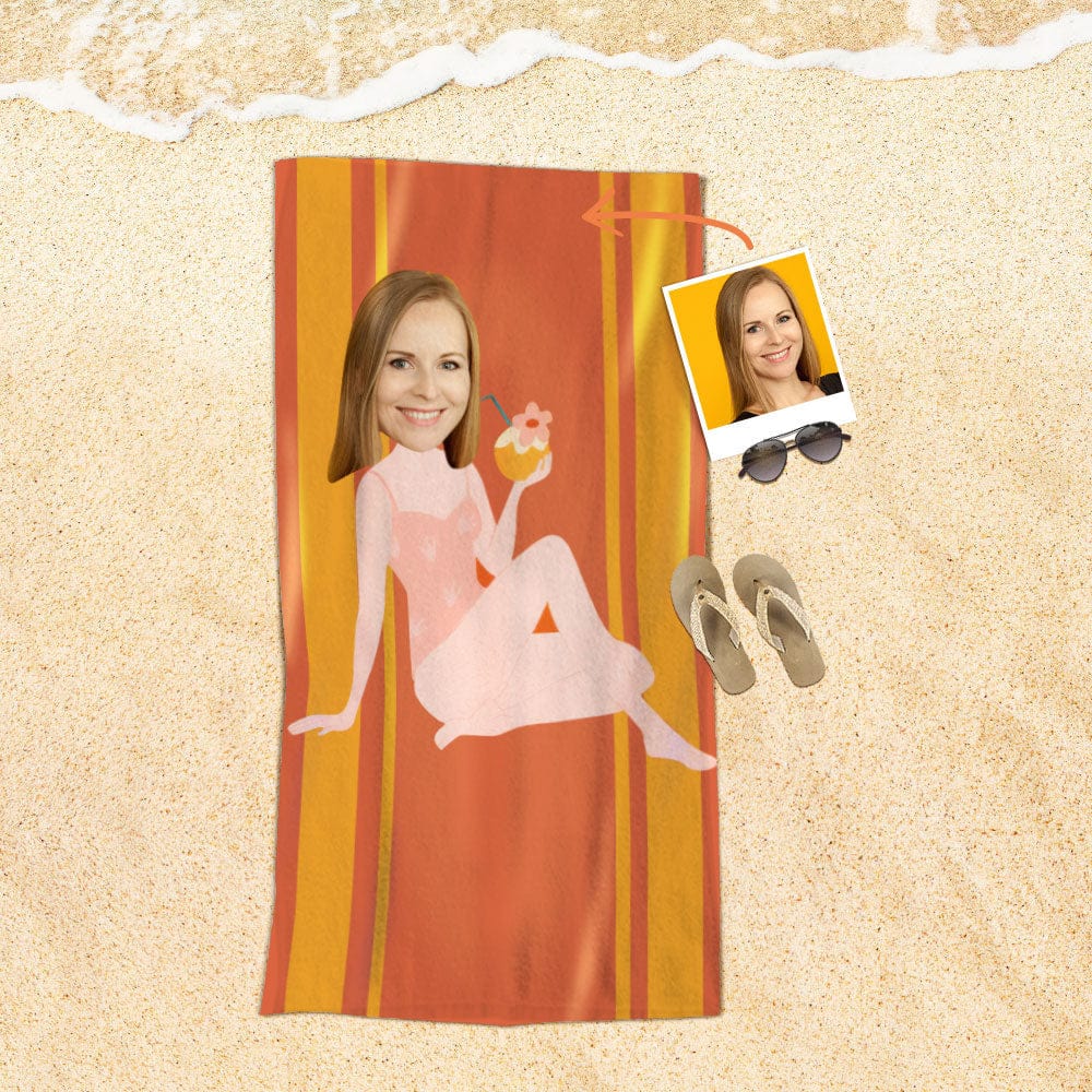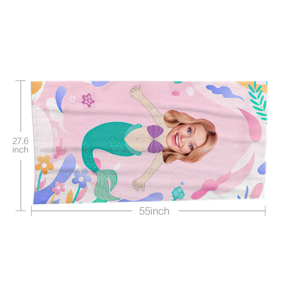 Custom Face Beach Towel Personalized Beach Towel Gift for Women-Mermaid
