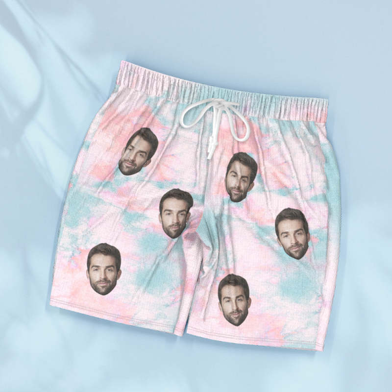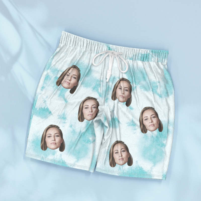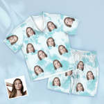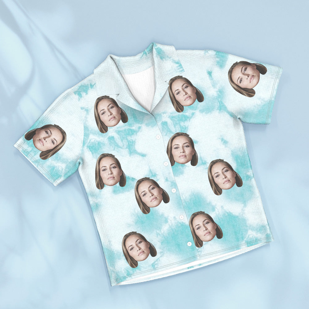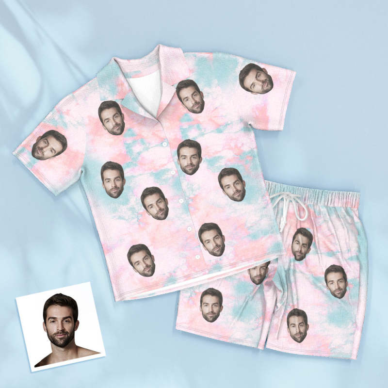 Custom Face Blue Tie Dye Pajamas Personalized Photo Short Sleepwear Love Gifts For Lover