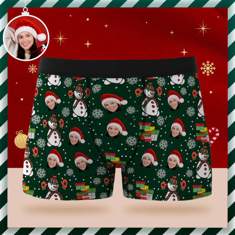Custom Face Boxer Briefs Personalized Green Underwear Snowman Merry Christmas Gifts for Him