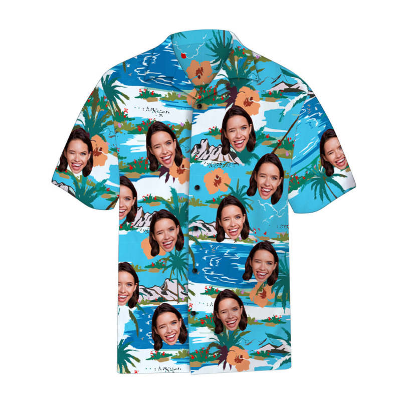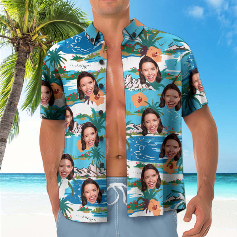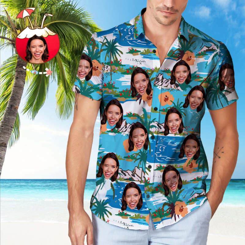 Custom Face Coconut Tree Pattern Hawaiian Shirt Men's Popular All Over Print Shirt
