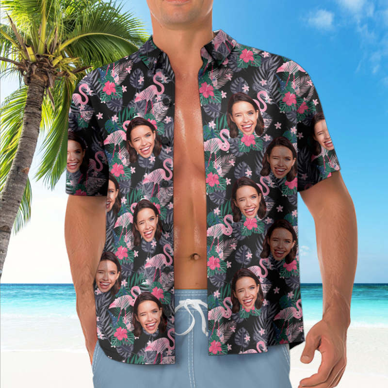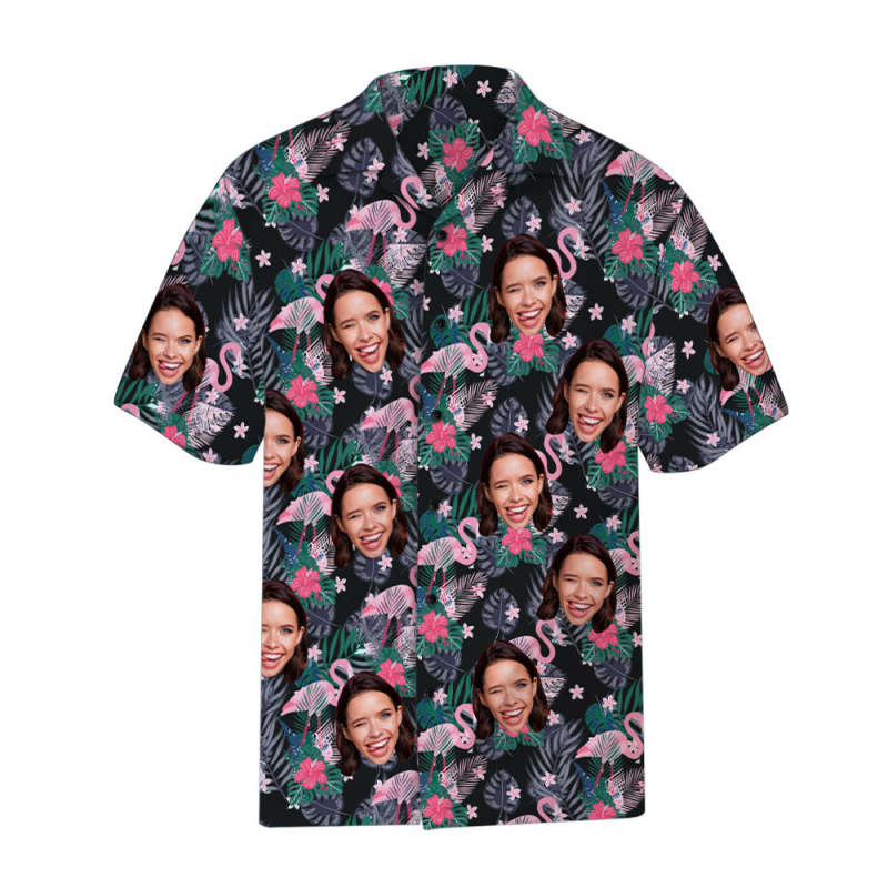 Custom Face Flamingo Hawaiian Shirt Floral Pattern Hawaiian Shirt