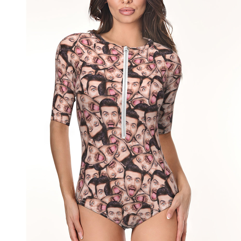 Custom Face Half Sleeve Swimsuit One Piece Swimwear Personalized Women's Half Sleeve Swimsuit