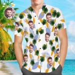 Custom Face Hawaiian Shirt Men's Popular All Over Print Shirt Small Leaves Holiday Gift