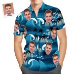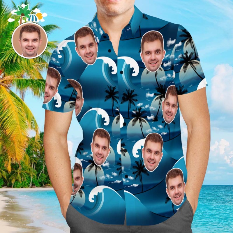Custom Face Hawaiian Shirt Men's Popular All Over Print Shirt Waves Coconut Tree Holiday Gift