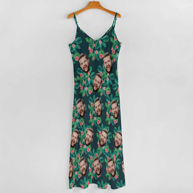 Custom Face Hawaiian Style Red Flowers Long Dress And Shirt Family Matching