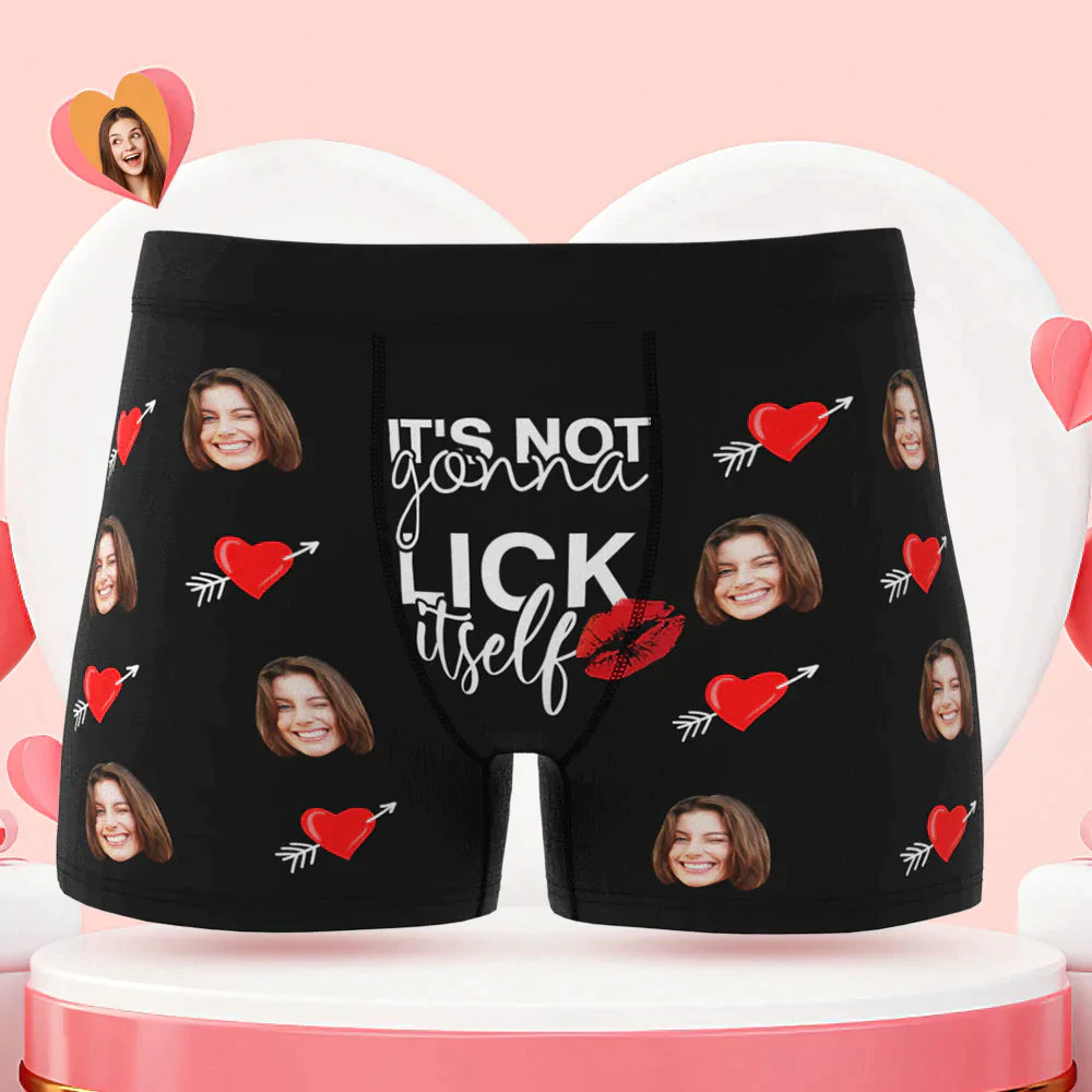 Custom Face Lick Itself Boxer Briefs Personalized Naughty Valentine's Day Gift for Him