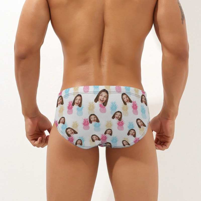 Custom Face Men's Swimming Trunks Personalized Colorful Small Pineapple Triangle Swim Briefs