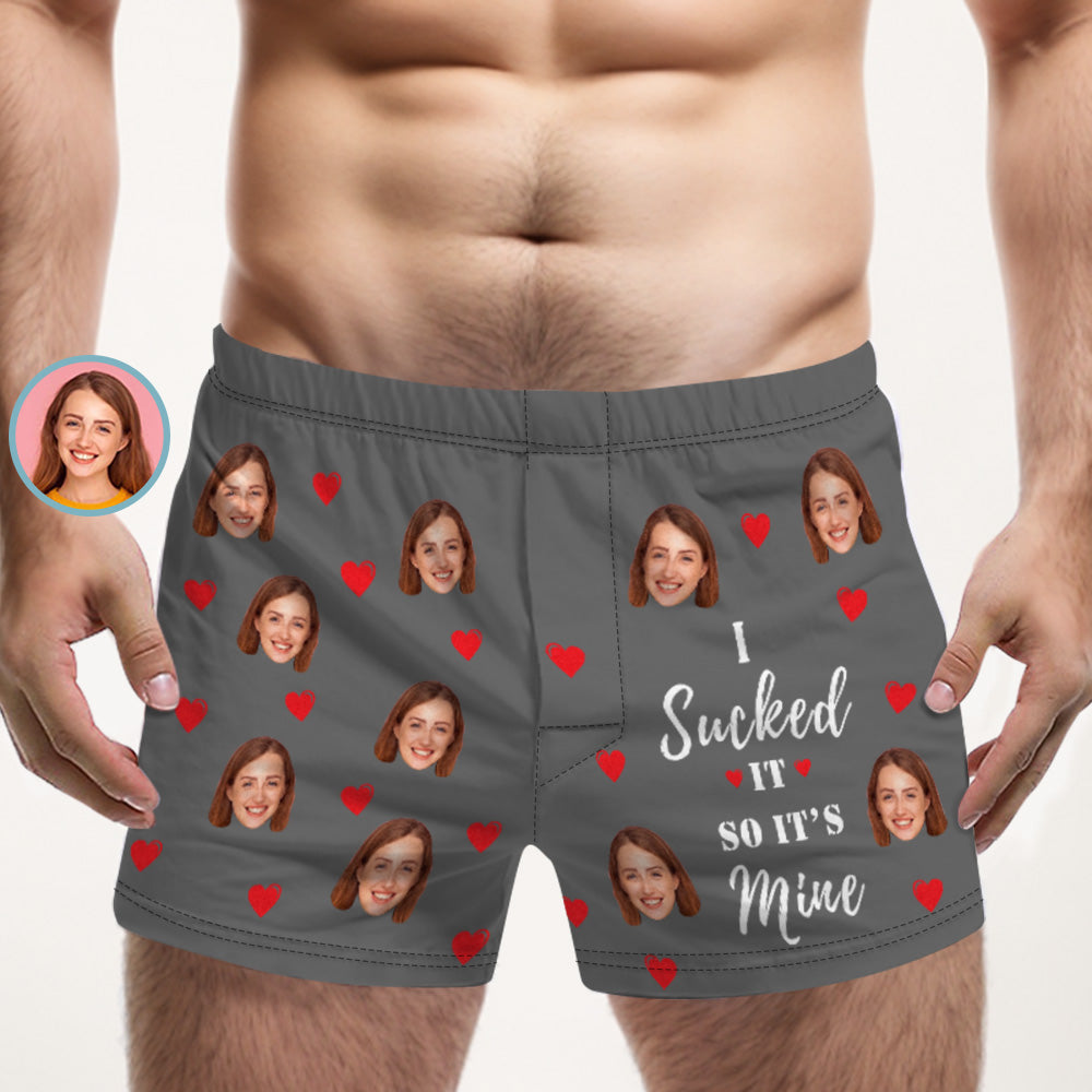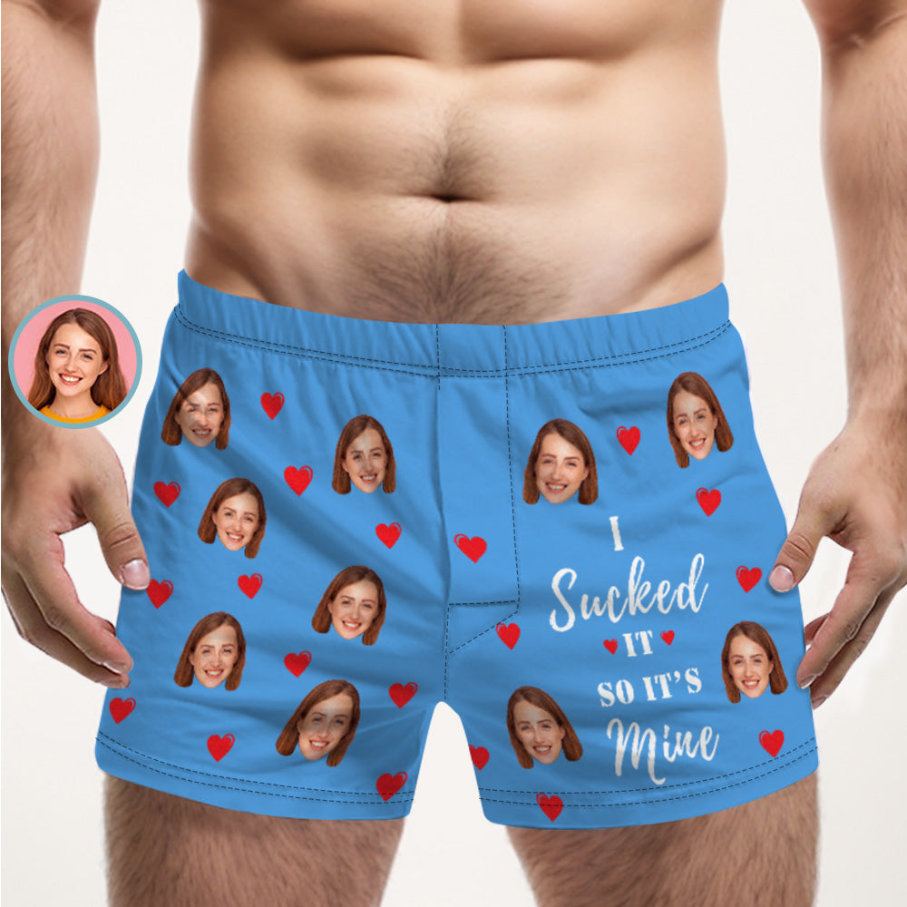 Custom Face Multicolor Boxer Shorts I SUCKED IT SO IT'S MINE Personalized Photo Underwear Gift for Him
