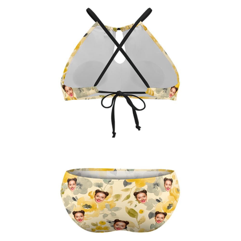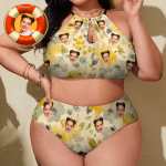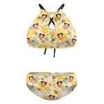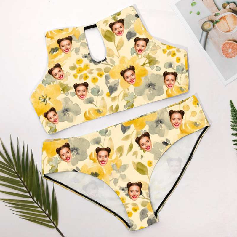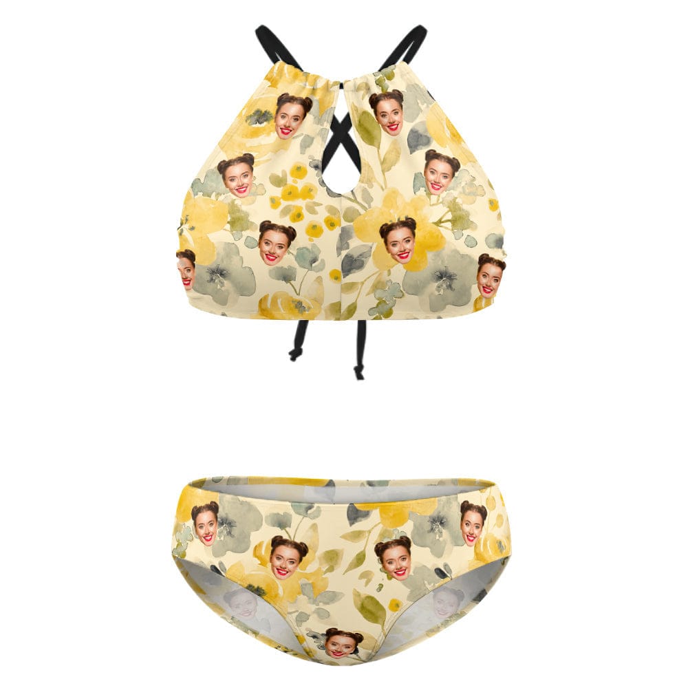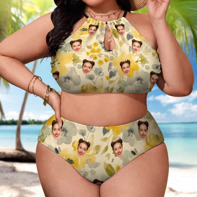 Custom Face Plus Size Swimwear Custom Swimsuit-Cute Yellow Floral Print