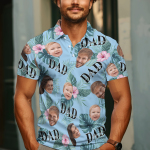 Custom Face Polo Hawaiian Blue Golf Polo Shirt Dad Beard Men's Polo Shirt Fathers Day Gift