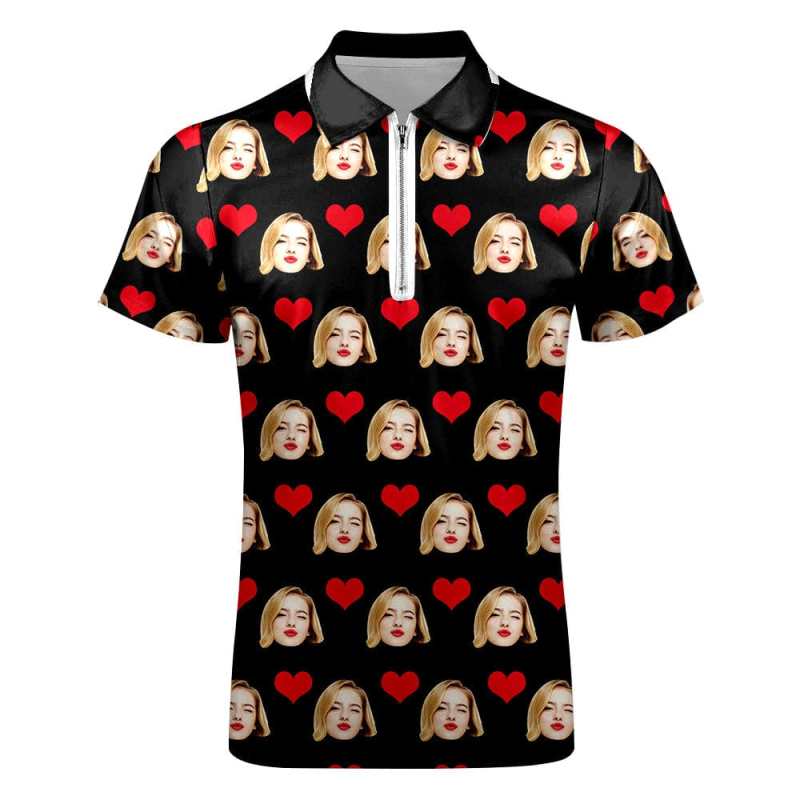 Custom Face Polo Shirt with Zipper Men's Polo Shirt for Boyfriend or Husband