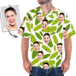 Face Hawaiian Shirt For Grandpa - Green Leaves