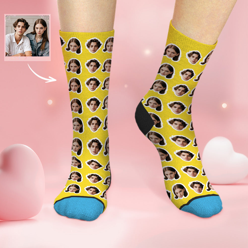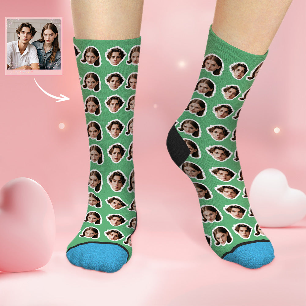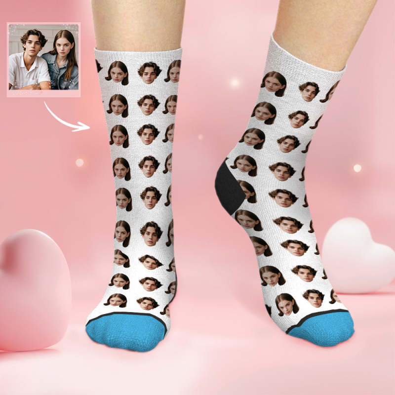 Custom Face Socks 3D Digital Printed Socks With Pictures and Name - Two Faces Valentine's Gifts