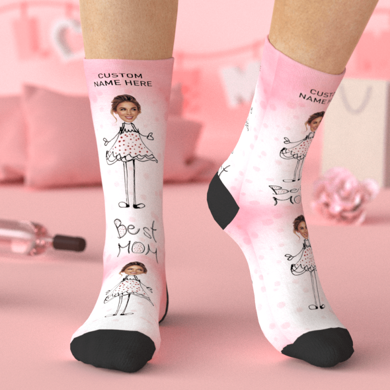 Custom Face Socks Custom Mother's Gift for Mom - Pretty Girl with Best Mom