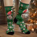 Custom Face Socks Personalized 3D Santa Hat Green Socks Christmas Gifts
