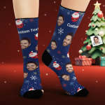 Custom Face Socks Personalized Photo Blue Socks Cute Santa Claus