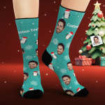Custom Face Socks Personalized Photo Socks Christmas Penguin