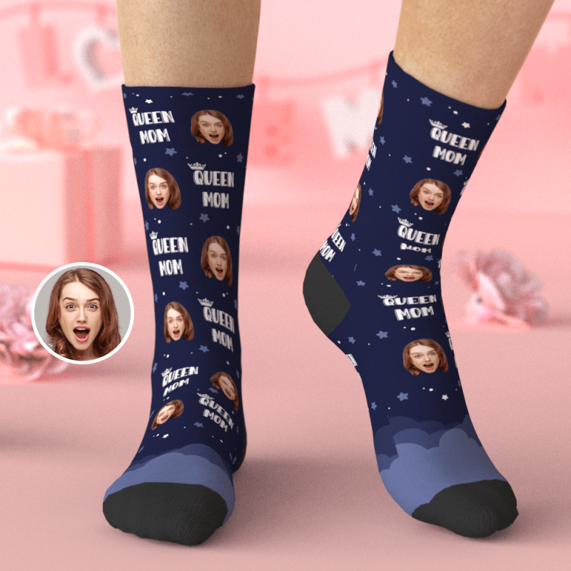 Custom Face Socks with Galaxy Space Gifts for Mom - Queen Mom