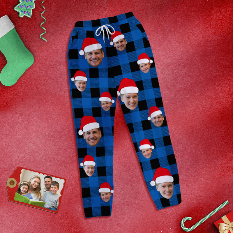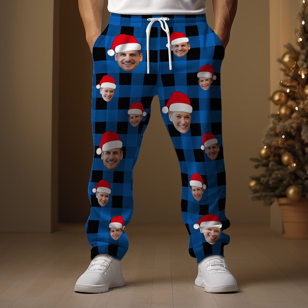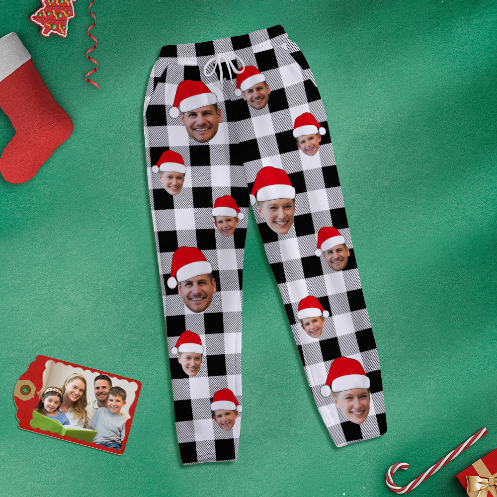 Custom Face Sweatpants Personalized Photo Christmas Family Buffalo Plaid Golf Pants for Him
