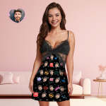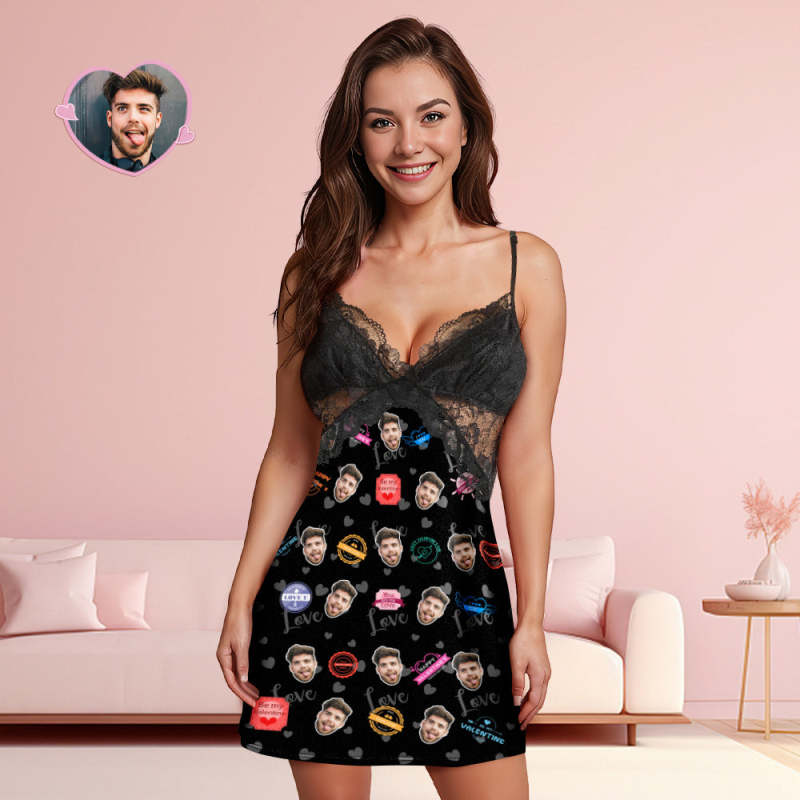 Custom Face Women Lace Sleepwear Love Stamps Personalized Photo Nightwear Valentine's Day Gift