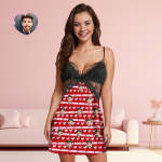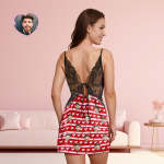 Custom Face Women Lace Sleepwear Love Stripes Personalized Photo Nightwear Valentine's Day Gift