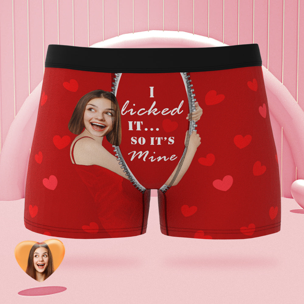 Custom Girlfriend Face Boxer Briefs I Licked It Personalized Naughty Valentine's Day Gift for Him