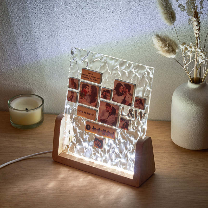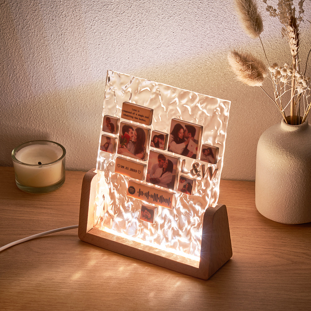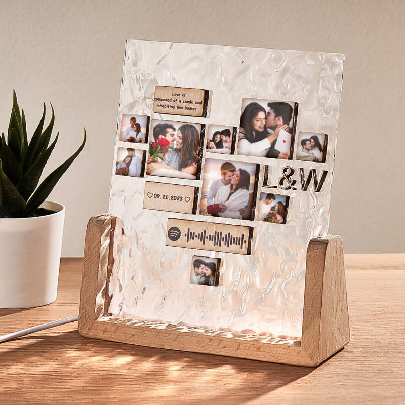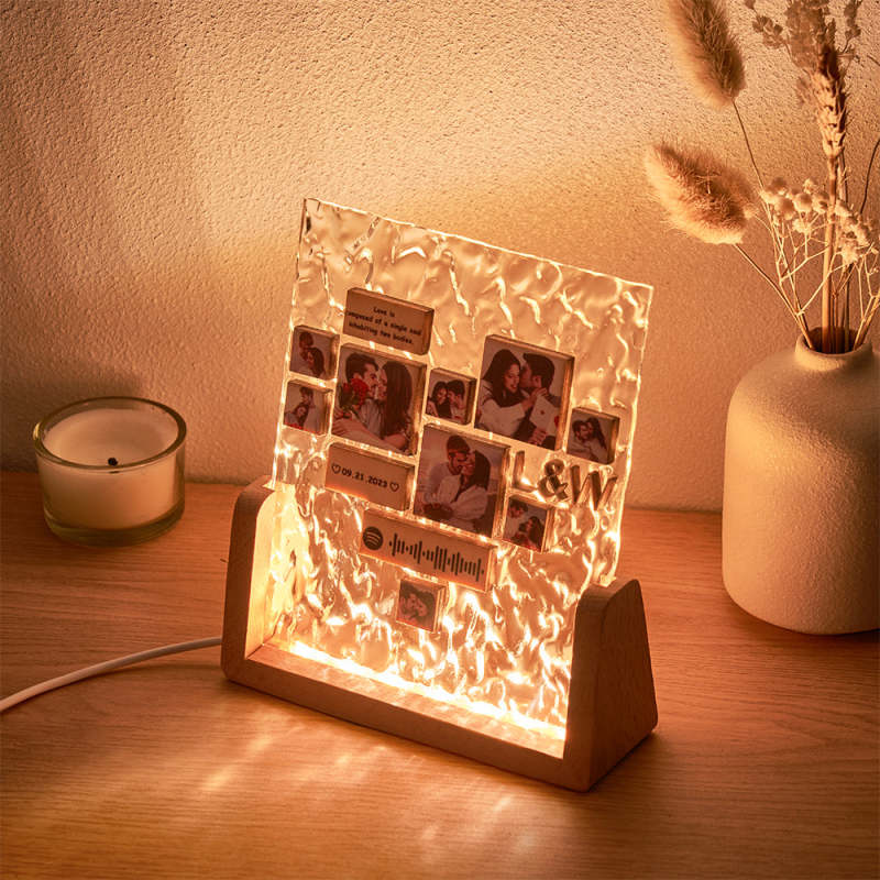 Custom Heart-Shaped Photo Frame Night Light Personalized Spotify Code Wooden Accessory Valentine's Day Gift for Couples