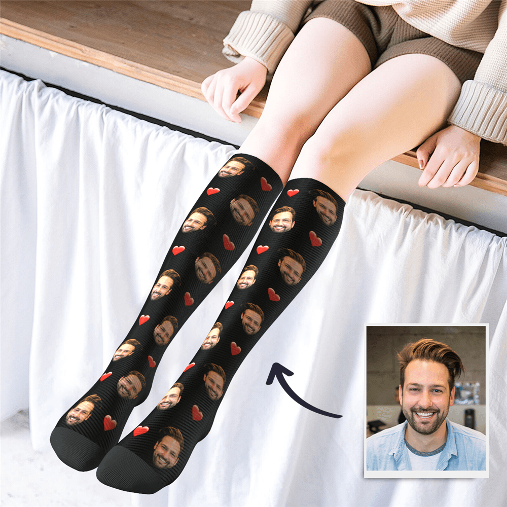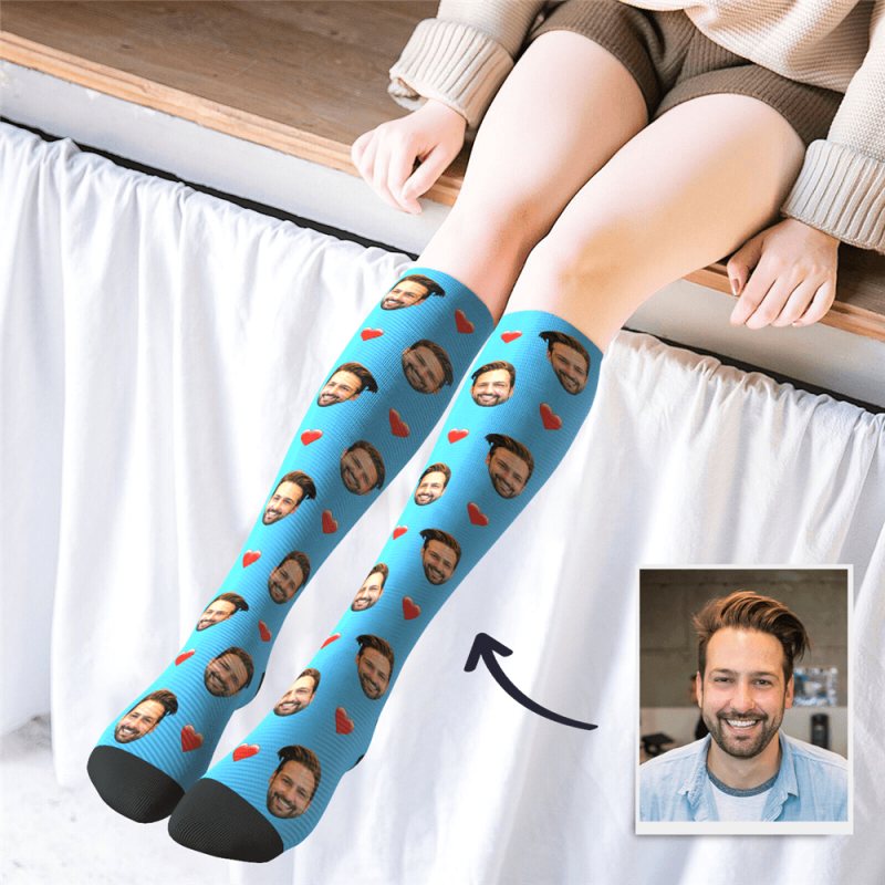 Long Distance Relationship Gift Boyfriend Face Knee High Socks